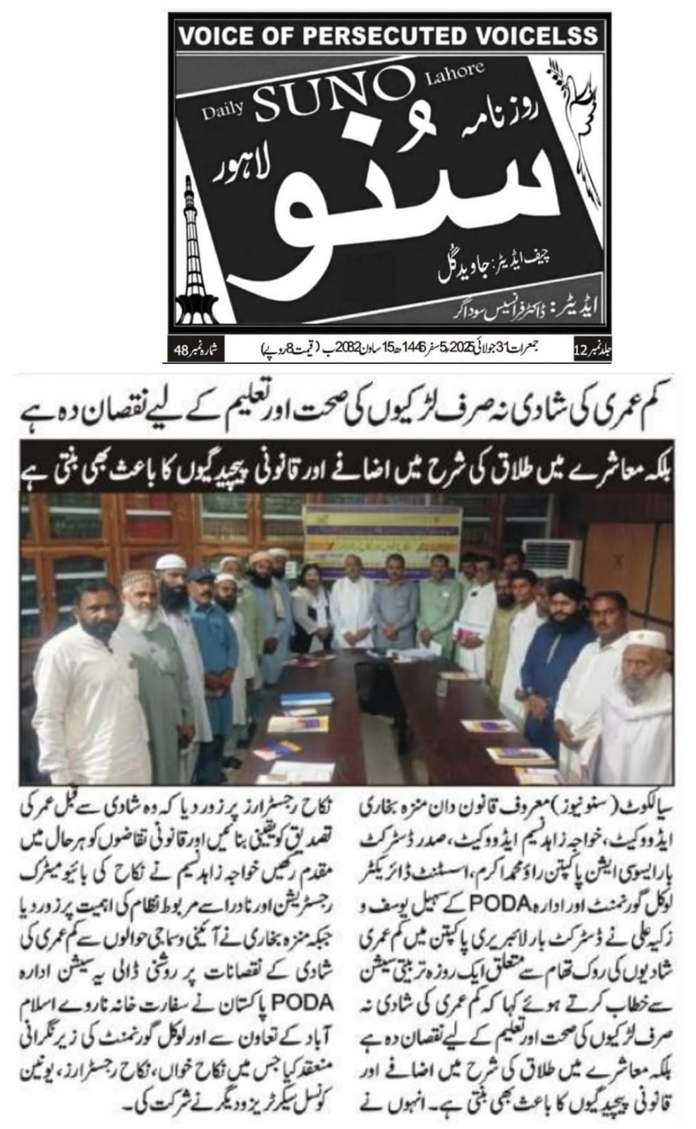 Home > Press Release > کم عمری کی شادی نہ صرف لڑکیوں کی صحت اور تعلیم کے لیے نقصان دہ ہے بلکہ معاشرے میں طلاق کی شرح میں اضافے اور قانونی پیچیدگیوں کا باعث بھی بنتی ہے۔
