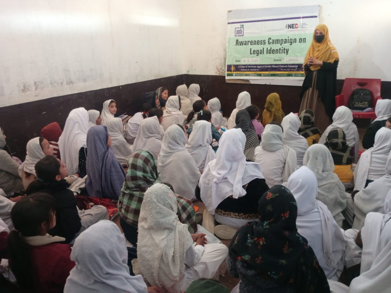 On 10 December, PODA Pakistan organized an awareness session on the importance of legal identity as part of the 16 Days of Activism campaign under the Rural Women’s Network for Civic Leadership and Participation Project, funded by the National Endowment for Democracy (NED). The activity was held at Zavia Public High School, Loralai, Balochistan.