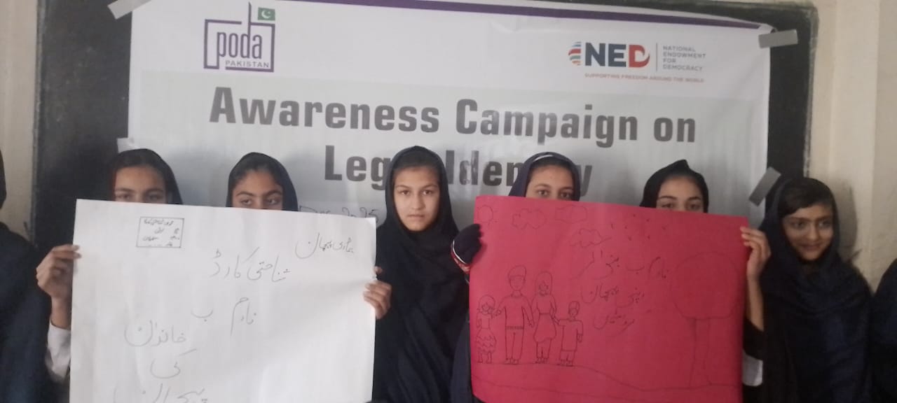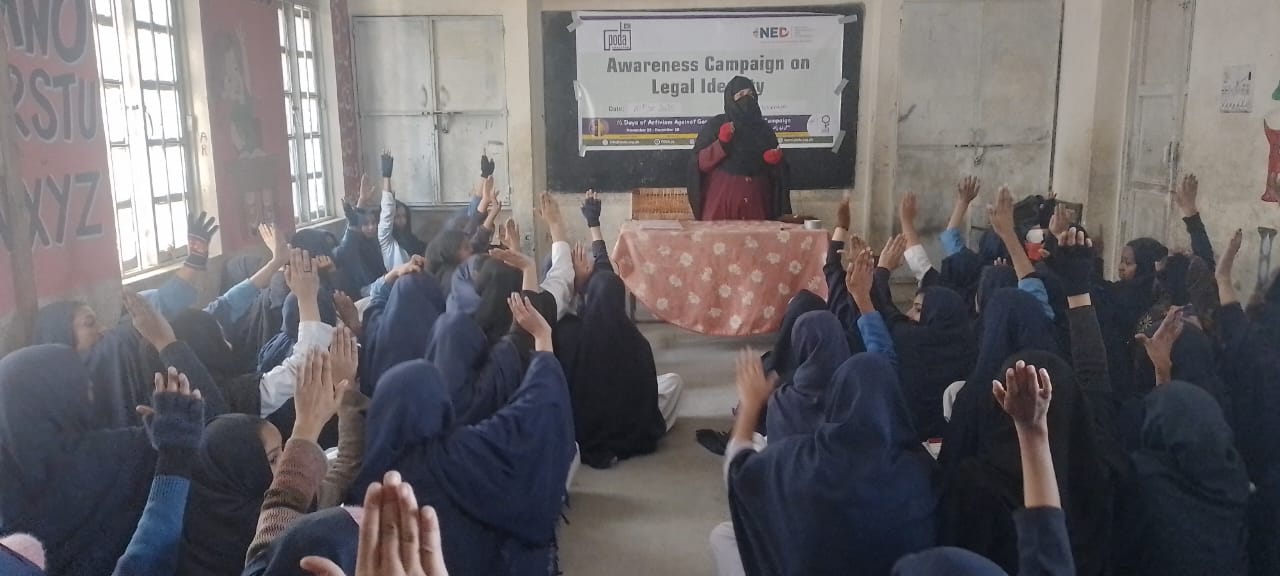 10 December, PODA Pakistan organized an awareness session on the importance of legal identity as part of the 16 Days of Activism campaign under the Rural Women’s Network for Civic Leadership and Participation Project, funded by the National Endowment for Democracy (NED). The activity was conducted at the Government Girls High School, Kurram.