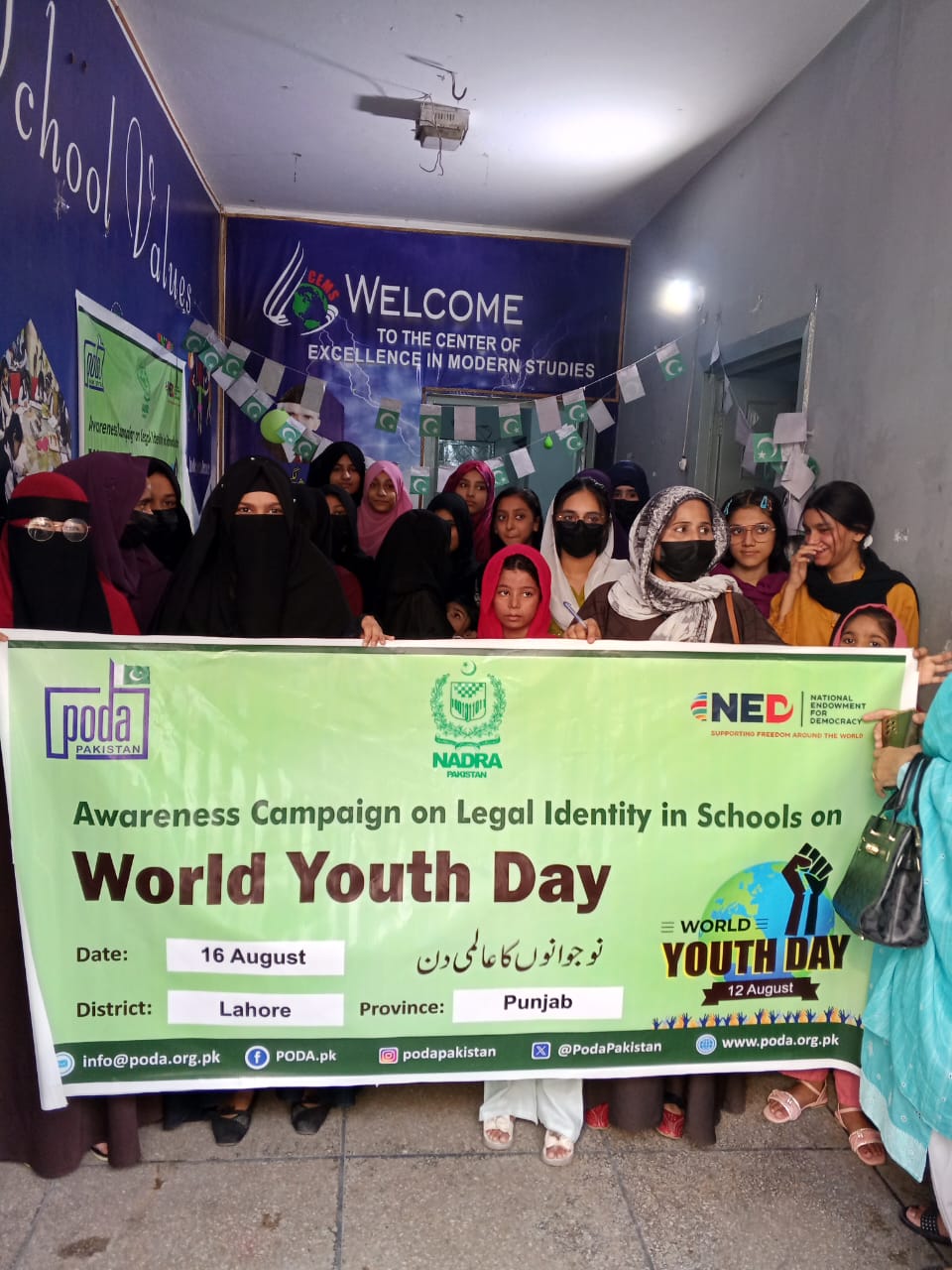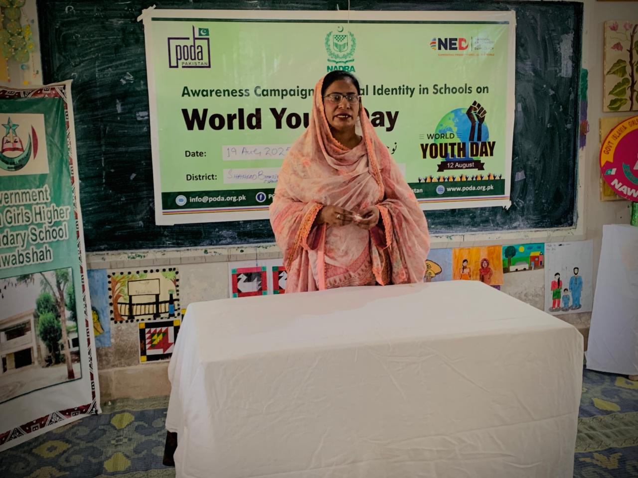 PODA Pakistan celebrated International Youth Day (12 August) with special awareness sessions in collaboration with NADRA. These activities were part of the Rural Women’s Network for Civic Leadership and Participation project, funded by the National Endowment for Democracy (NED). The aim was to help young people understand the importance of legal identity documents and to encourage them to participate in civic life.