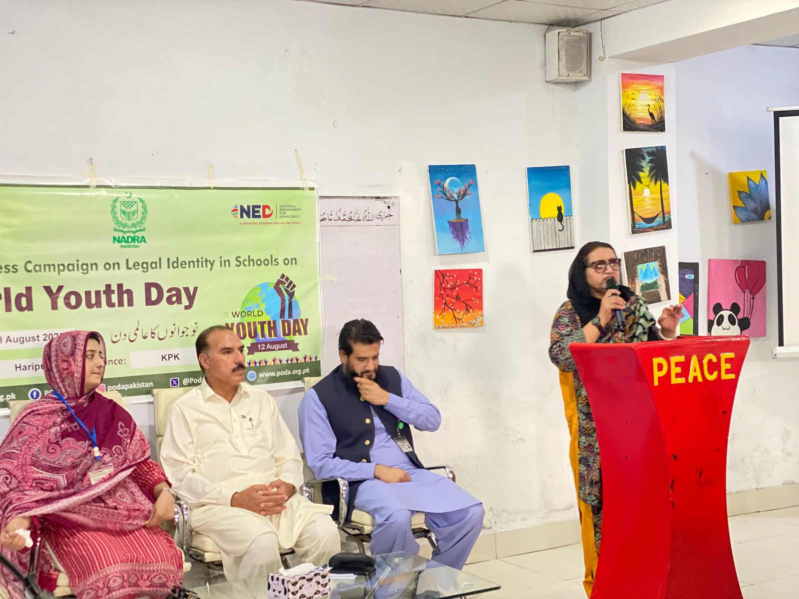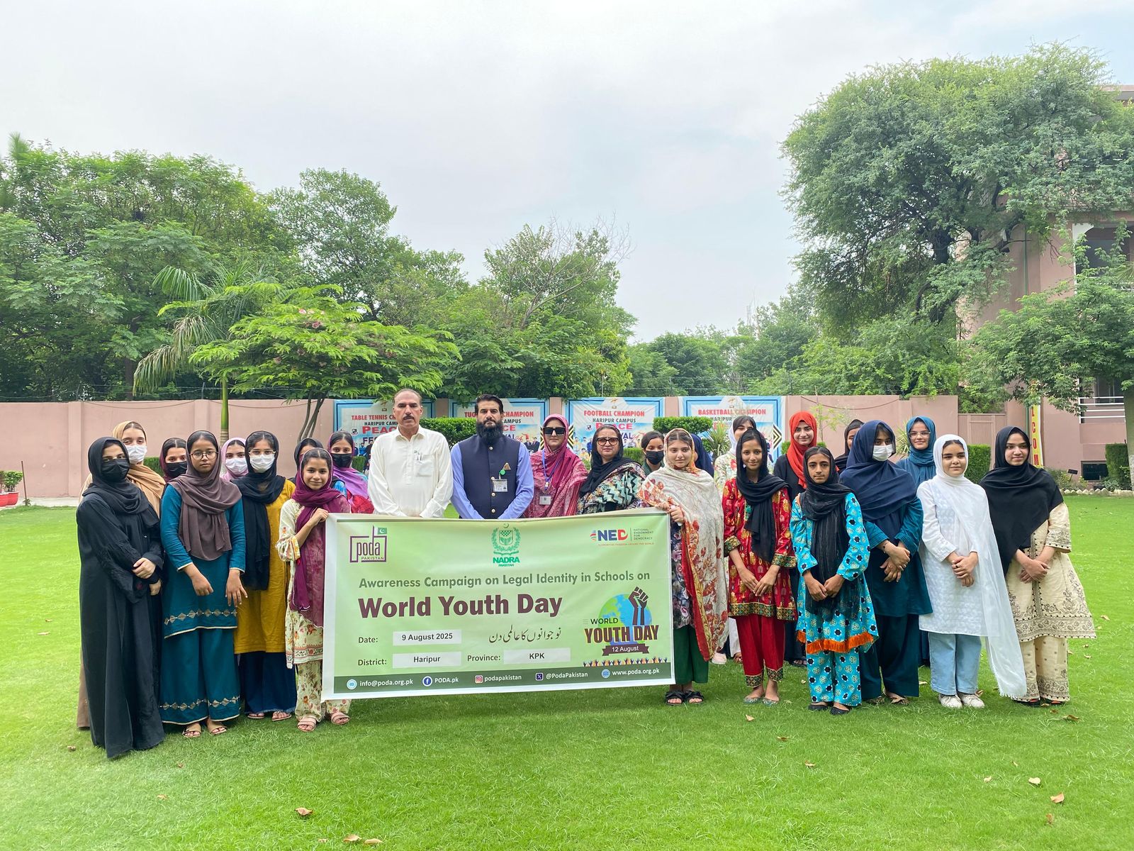 Saturday 9th August, 2025: Ms. Sajida Hasrat Khan, PODA Rural Women Leader and member of the DIWA (District Information Women Alliance), conducted an Awareness Campaign on Legal Identity linked with International Youth Day at Peace School and College, Haripur. The session was attended by 55 participants from classes 8, 9, 10, and 11. The event was organized by PODA Pakistan under the Rural Women’s Network for Civic Leadership and Participation project, funded by the National Endowment for Democracy (NED), in collaboration with NADRA.