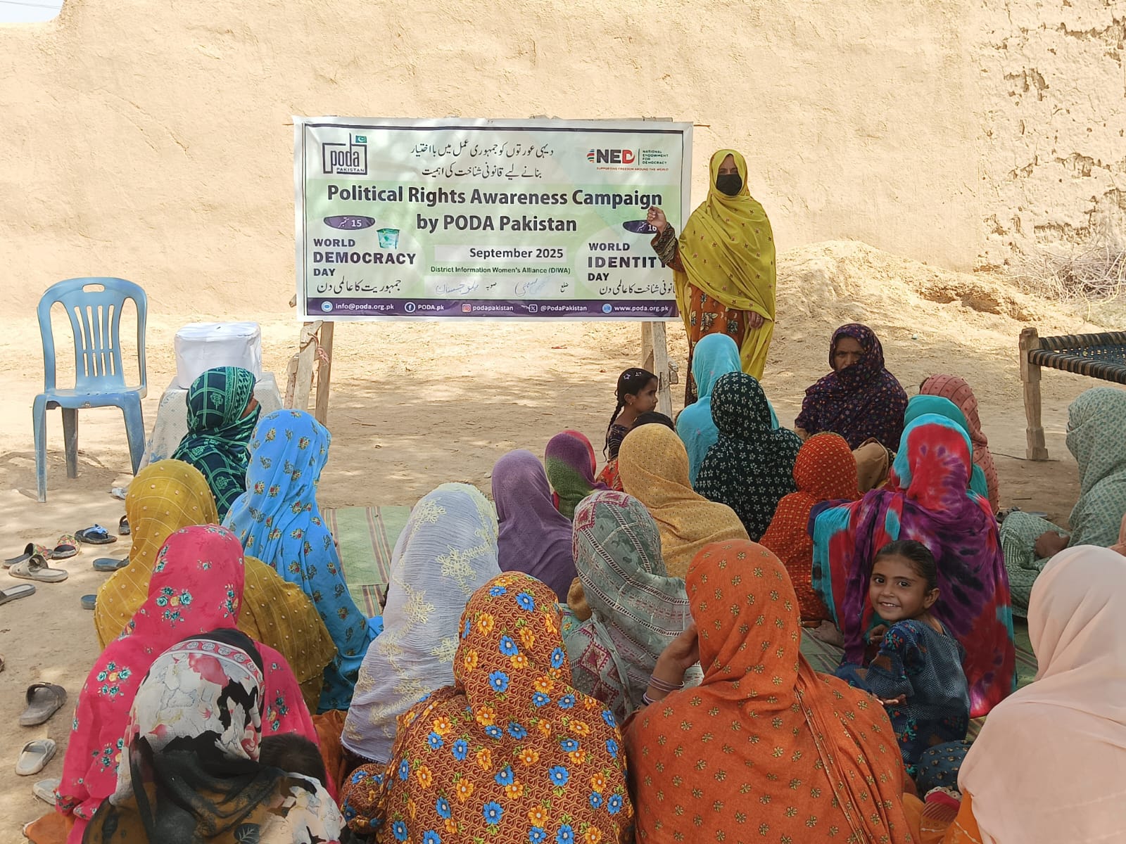 On 17 September 2025, PODA organized a Political Rights Awareness Session and Mock Polling at Sheikhupura, Punjab under the Rural Women’s Network for Civic Leadership and Participation Project, funded by the National Endowment for...