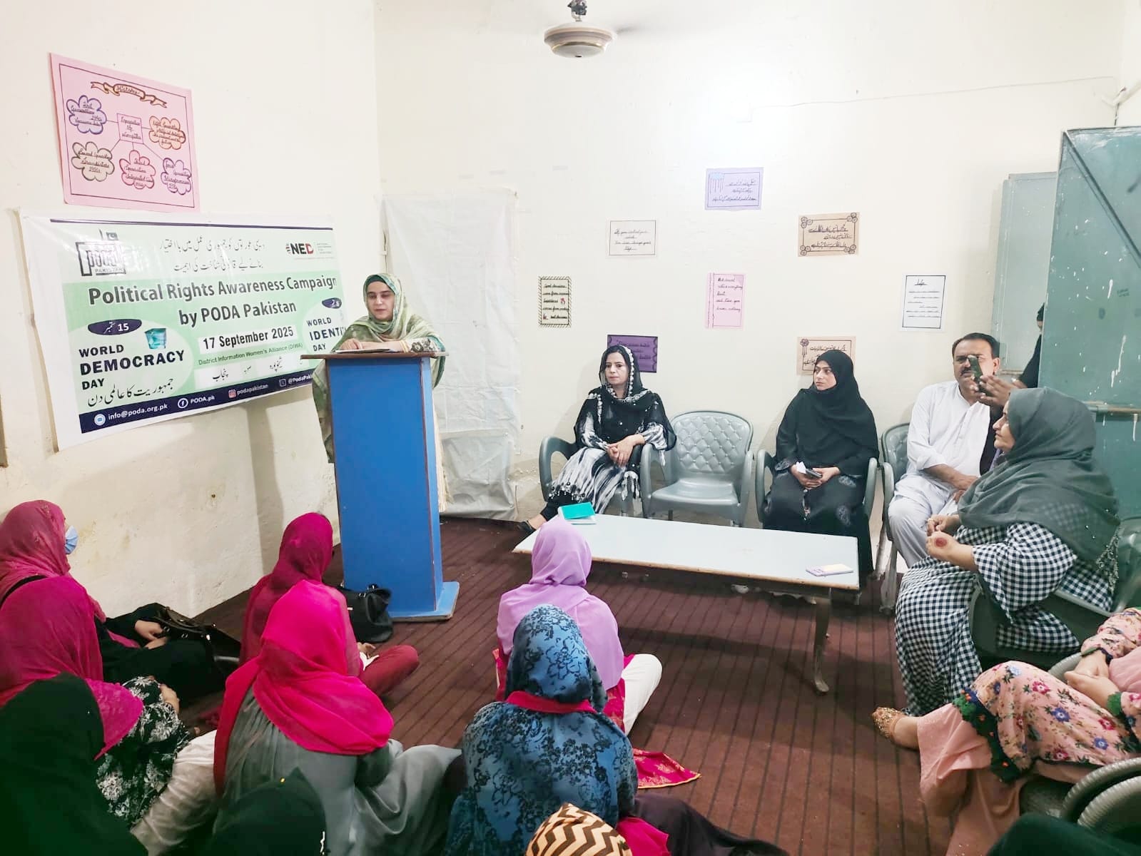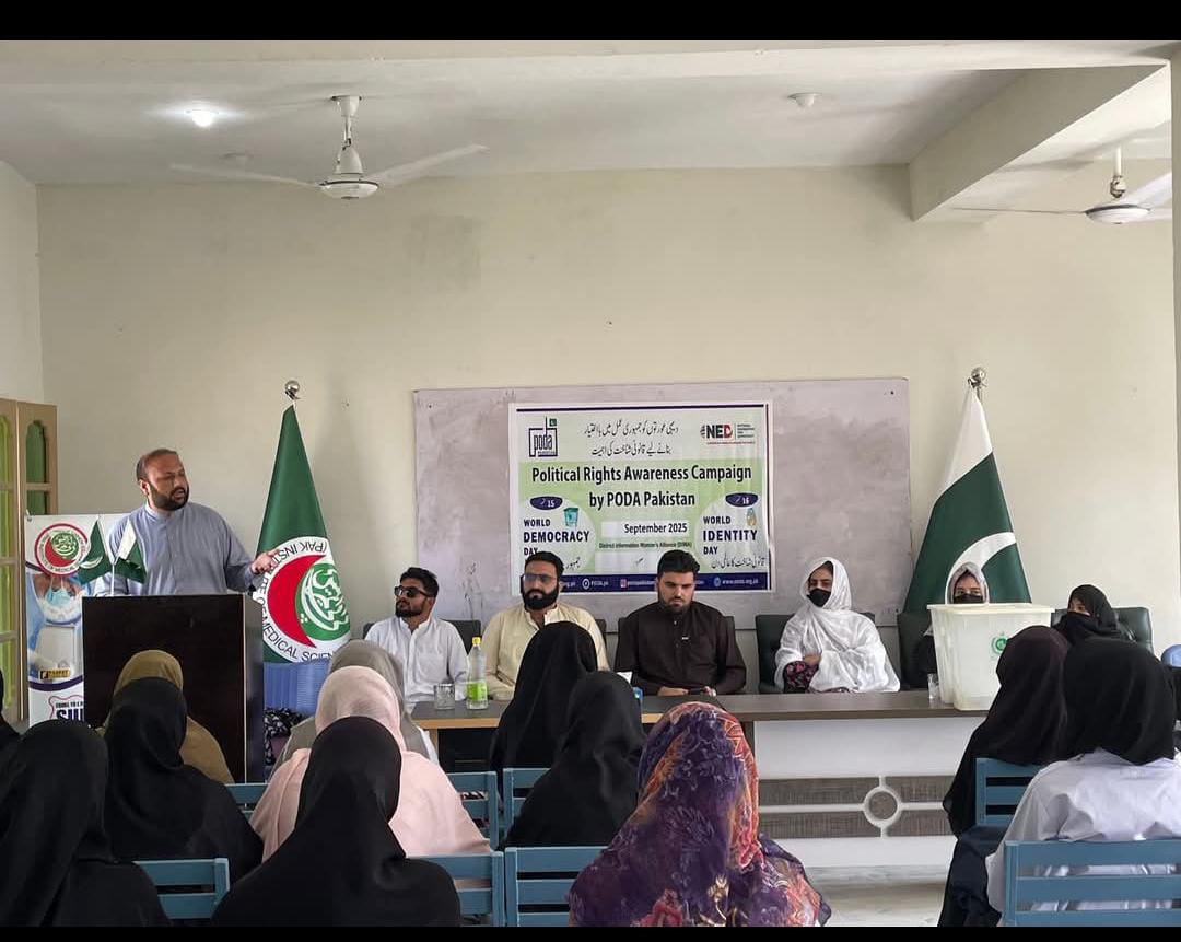 On 19 September 2025, PODA organized a Political Rights Awareness Session and Mock Polling at the Pak Institute of Medical Sciences, (PIMS) Kohat, under the Rural Women’s Network for Civic Leadership and Participation Project,...