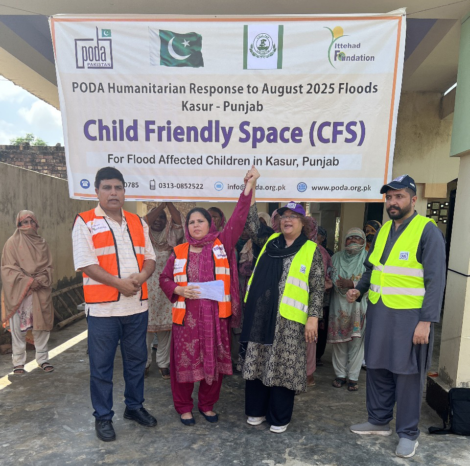 Thursday, September 11, 2025: In a joint humanitarian effort, the Potohar Organization for Development Advocacy (PODA) and Ittehad Foundation, Kasur, have launched child and women-friendly spaces in the flood-affected village of Rajian Wala, Kasur....