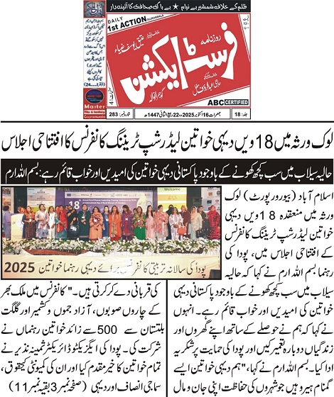 REPORT MUHAMMAD DANIYAL CHIEF CORRESPONDENT DAILY RELATION TIMES ISLAMABAD: Speaking at the inaugural plenary of the 18th Rural Women Leadership Training Conference held at Lok Virsa, Islamabad, PODA leader from Khanewal, Bismillah Iram. “Despite...