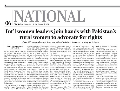 ISLAMABAD: On the second day of the 18th Rural Women Leadership Training Conference at Lok Virsa, over 500 women leaders from more than 100 districts across Pakistan unanimously adopted a resolution to set 18...