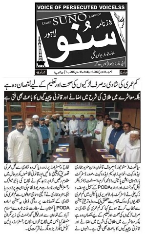 ادار پودا پاکستان ٹیم نے سفارت خانہ برائے ناروے اسلام آباد کے تعاون اور لوکل گورنمنٹ کی زیر نگرانی ضلع سیالکوٹ میں کم عمری کی شادیوں کی روک تھام کے لیے نکاح خواں اور نکاح رجسٹرار کے کردار اور ذمہ داریوں پر مبنی ایک روزہ تربیتی سیشن کا انعقاد مقامی ہوٹل میں کیا گیا