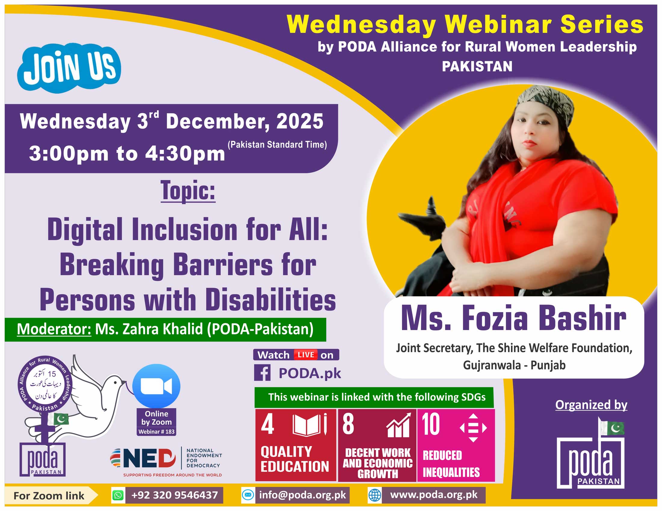 Join us on Wednesday 3rd December, 2025 from 3:00pm to 4:30pm Pakistan Time on Zoom Our speaker this week is Ms. Fozia Bashir, Joint Secretary – The Shine Welfare Foundation, Gujranwala – Punjab. Topic:...
