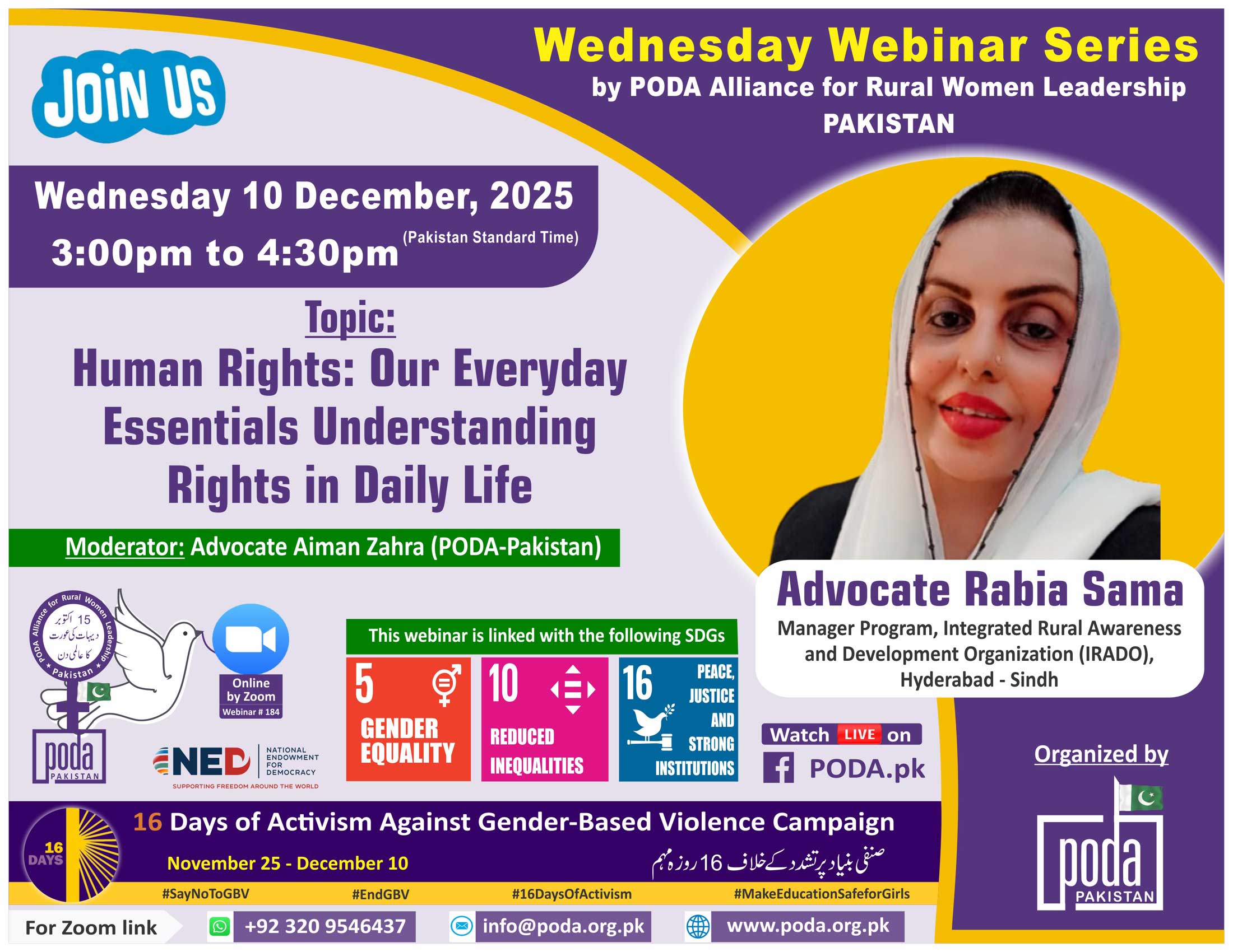 Join us on Wednesday 10 December, 2025 from 3:00pm to 4:30pm Pakistan Time on Zoom Our speaker this week is Advocate Rabia Sama, Manager Program, Integrated Rural Awareness and Development Organization (IRADO), Hyderabad –...