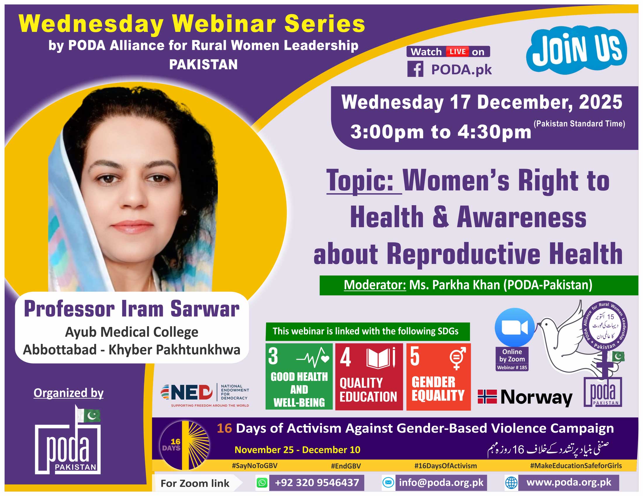 Join us on Wednesday 17 December, 2025 from 3:00pm to 4:30pm Pakistan Time on Zoom Our speaker this week is Professor Iram Sarwar, Ayub Medical College, Abbottabad – Khyber Pakhtunkhwa. Topic: Women’s Rights to...