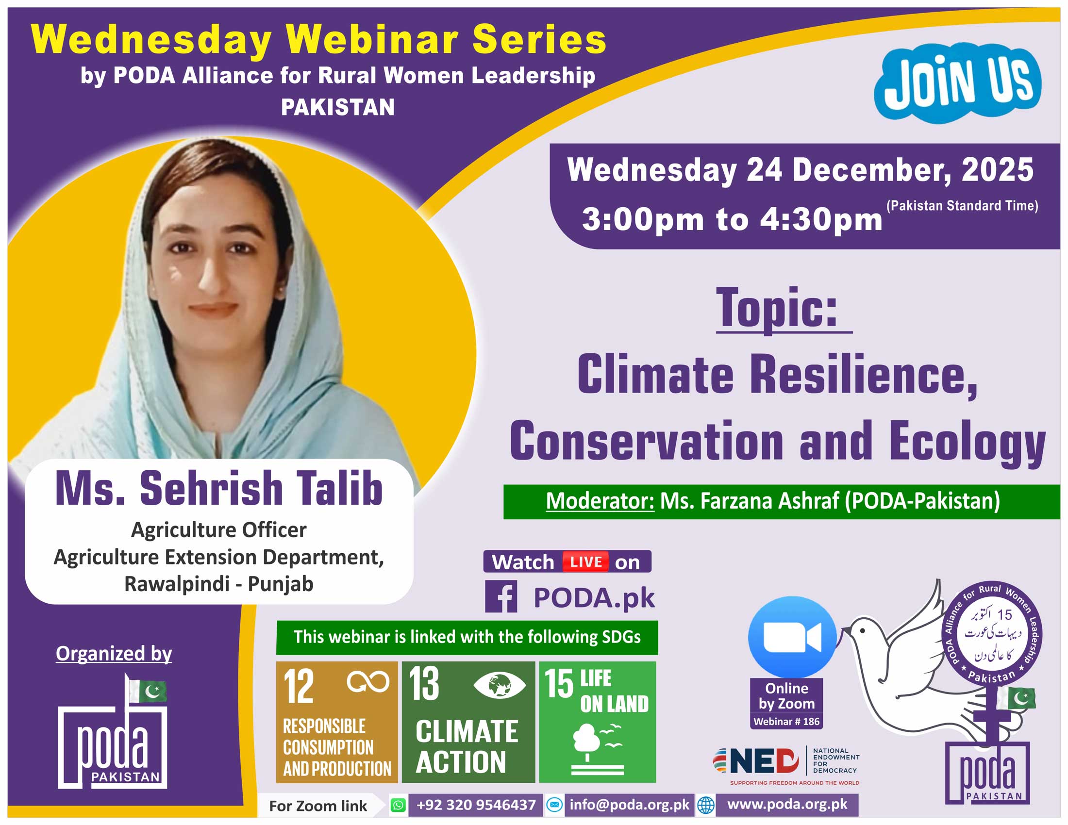 Join us on Wednesday 24 December, 2025 from 3:00pm to 4:30pm Pakistan Time on Zoom Our speaker this week is Ms. Sehrish Talib, Agriculture Officer, Agriculture Extension Department, Rawalpindi – Punjab. Topic: Climate Resilience,...