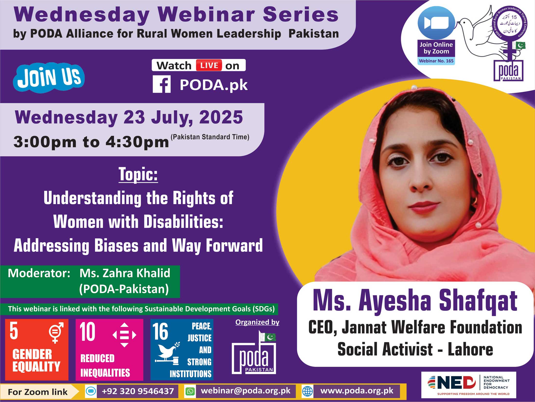 Join us on Wednesday 23 July, 2025 from 3:00pm to 4:30pm Pakistan Time on Zoom Our Speaker this week is Ms. Ayesha Shafqat, CEO, Jannat Welfare Foundation, Social Activist – Lahore Topic: Understanding the...