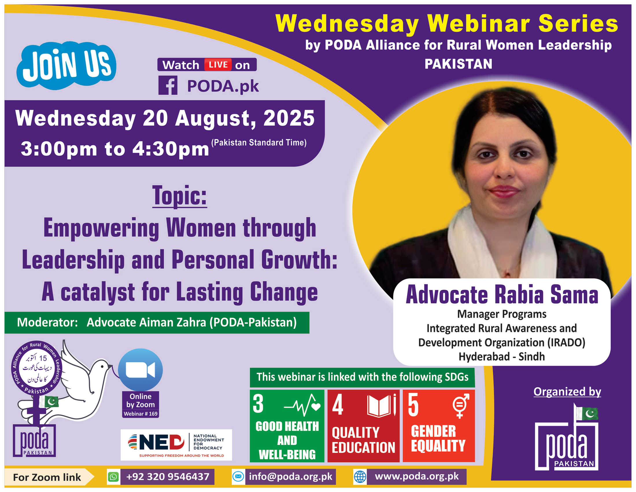 Join us on Wednesday 20 August, 2025 from 3:00pm to 4:30pm Pakistan Time on Zoom Our speaker this week is Advocate Rabia Sama, Manager Programs, Integrated Rural Awareness and Development Organization (IRADO), Hyderabad –...