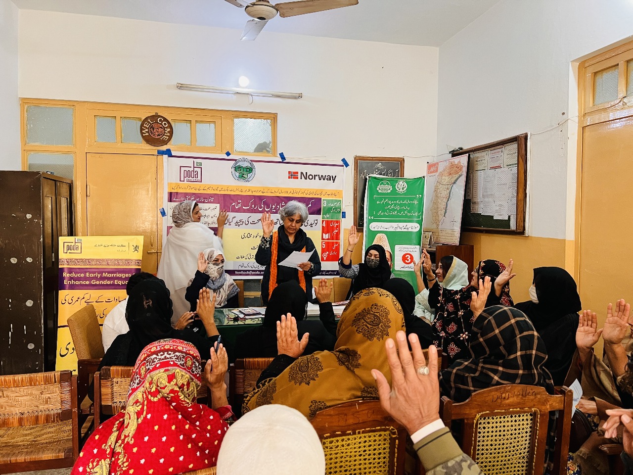 Organized by the Potohar Organization for Development Advocacy (PODA) in collaboration with the District Population Welfare Office Jauharabad (Khushab) and supported by the Sustainable Development Association (SDA), the workshop took place at the Family Health Clinic Hall. The activity was part of PODA’s three-year project, “Reduce Early Marriages to Enhance Gender Equality”, funded by the Norwegian Embassy in Islamabad and set to conclude later this month. The session was linked to the global 16 Days of Activism Campaign against Gender-Based Violence.