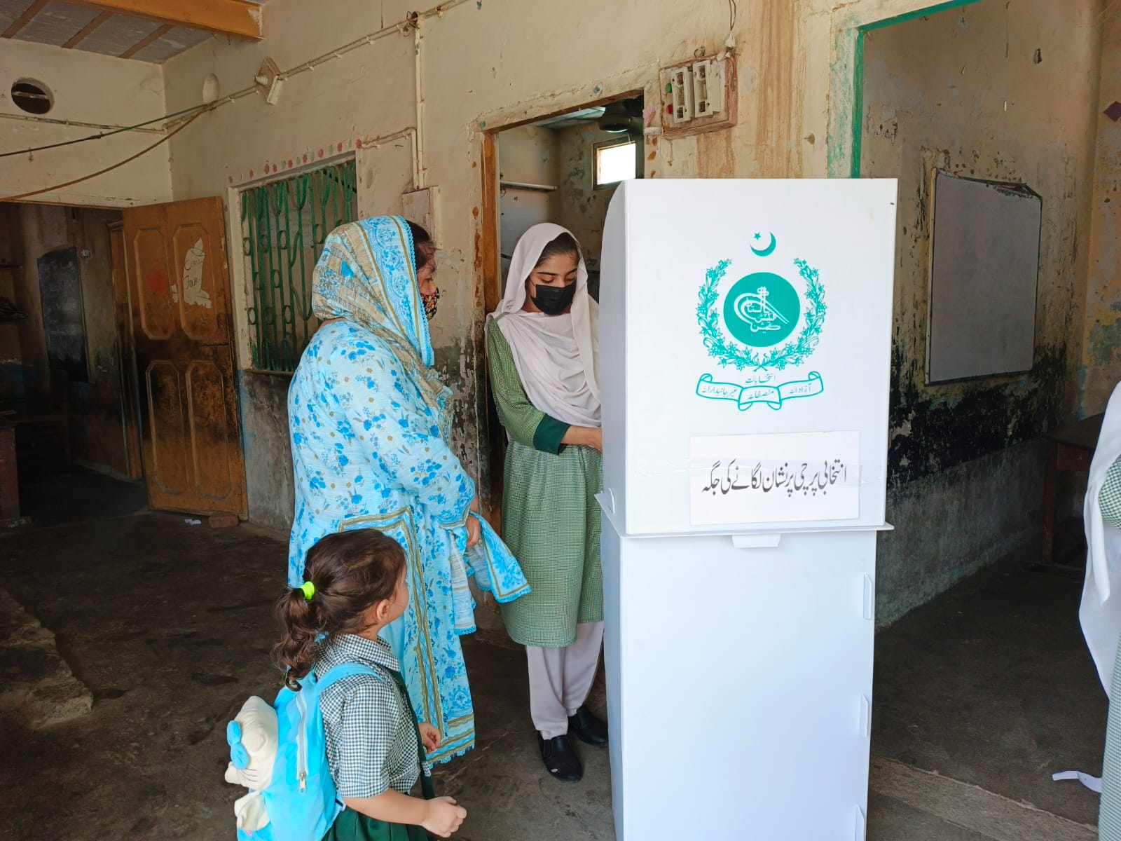 The session was facilitated by Ms. Nousheen Sajjad, PODA Rural Woman Leader, a dedicated civic educator and community leader. A total of 52 participants took part in the activity, including 28 young female students and 24 young boys with the support of the District Election Commissioner, an official ballot box and polling booth were provided, giving students a real-life voting experience. Ms. Sajjad explained the voting process step by step and highlighted the importance of having a valid CNIC, which is needed for voting, education, bank accounts, and government services.